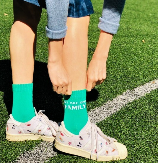 Яркие носки с фразами "We are one family" и "Forever Young" с логотипом HAGLAR на ступнях.