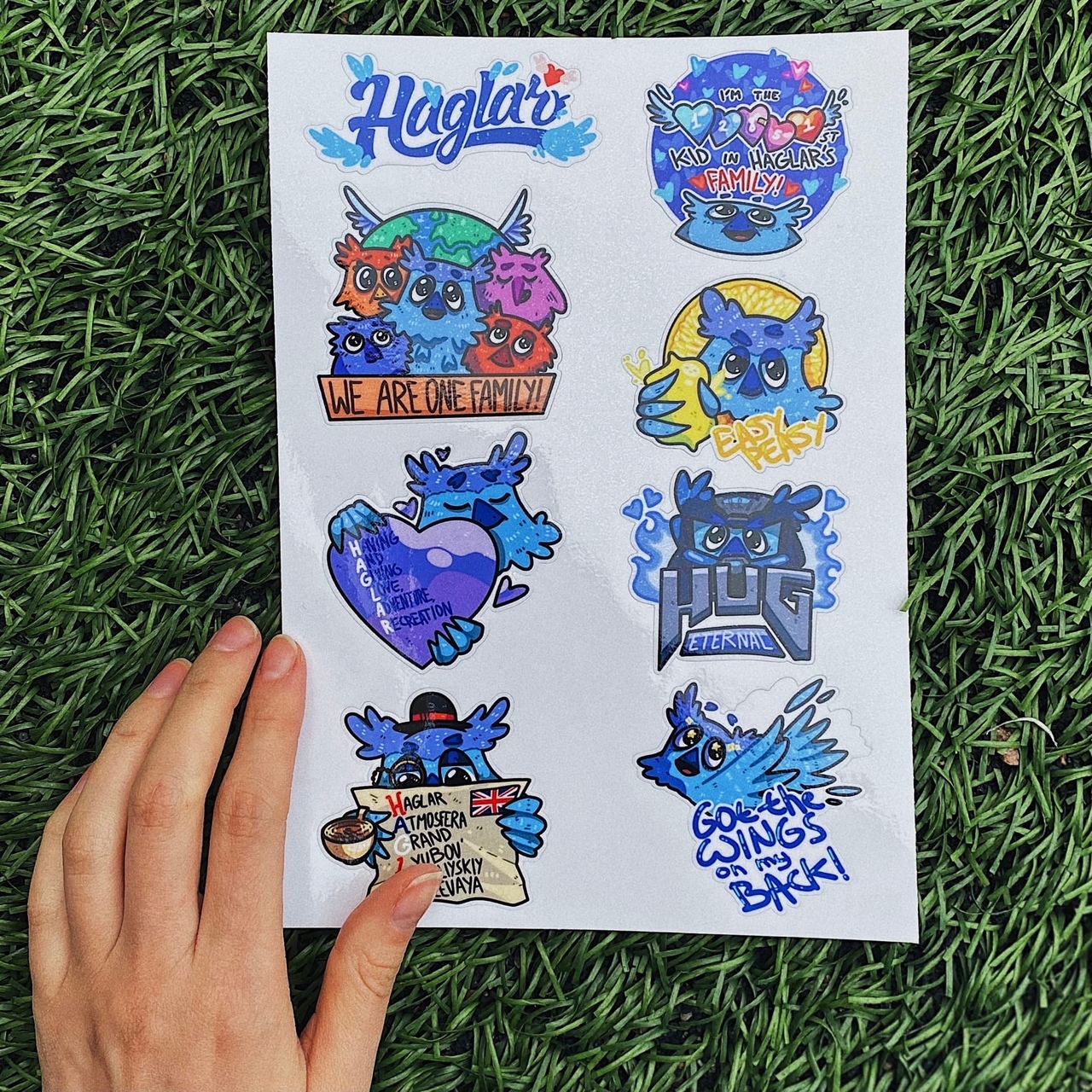 Яркие стикеры с изображением нашего талисмана - Хагги, и забавными фразами на английском языке, которые украсят любую поверхность:) • Размер стикерпака: А6.