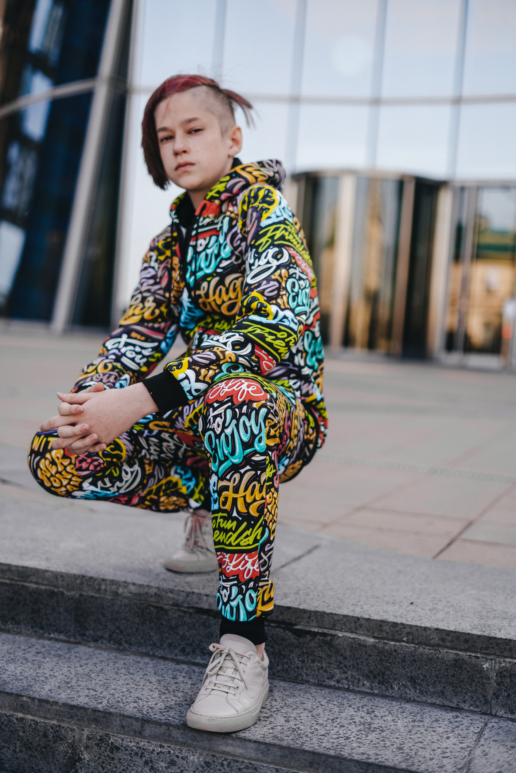 Штаны модели "джоггеры" свободного кроя с мягкой резинкой на талии и щиколотках. Выполнены из плотного трикотажа из полностью запринтованной ткани. На правой штанине находится лампас с надписью HAGLAR. Идеально подходят к толстовке или свитшоту HAGLAR.